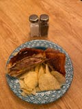 Tender smoked brisket is slow-cooked on ole salty. She hasn't let me down yet. Topped with BBQ sauce.